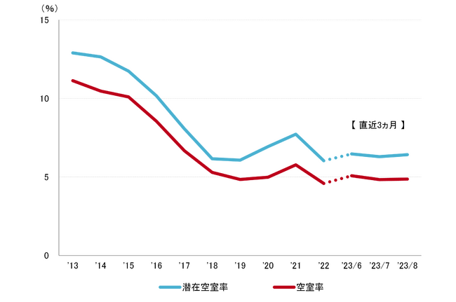 ※潜在空室率:貸付総面積に対する「募集面積」の割合