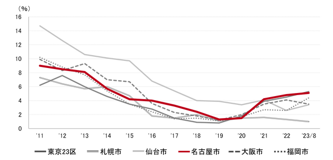 [名古屋版]【最新オフィスマーケットレポート発表】オフィス空室率 2ヵ月連続で上昇し、5%台が視野に(三幸エステート)