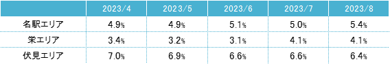 ※1:主要エリア=名古屋市名駅エリア・栄エリア・伏見エリア