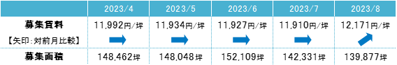 募集賃料 5ヵ月ぶりに12,000円/坪台へ上昇