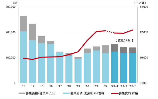 全規模ビル 募集賃料&募集面積:募集面積 2021年2月以来の13万坪台へ減少
