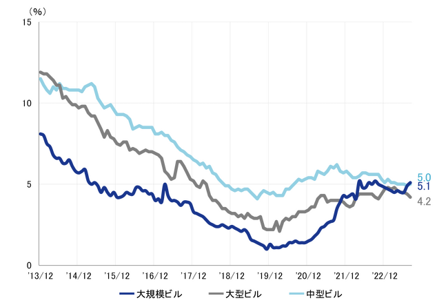 規模別 空室率:「大規模」10ヵ月ぶりに5%台へ上昇