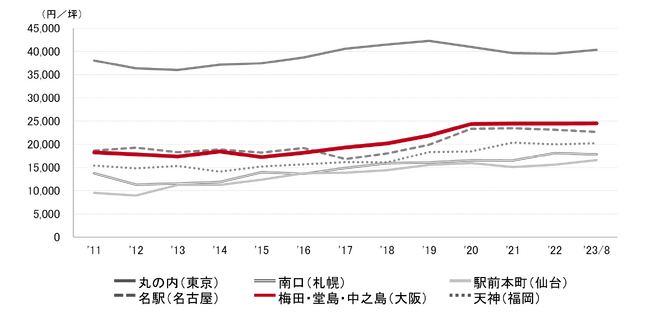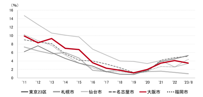 [大阪版]【最新オフィスマーケットレポート発表】オフィス空室率 2ヵ月連続で低下し、3%台半ばへ(三幸エステート)