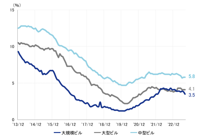 規模別 空室率:「大型」4%台前半で小幅な動き