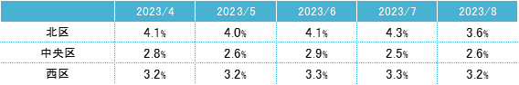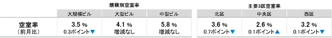 大規模ビル 主要3区 空室率:「北区」大幅に低下し、8か月ぶりに3%台へ