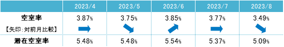 潜在空室率 2ヵ月連続で低下し、4%台が目前に