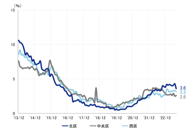 「北区」大幅に低下し、8か月ぶりに3%台へ