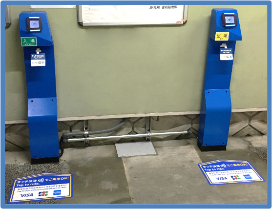 現在、JR九州の鹿児島本線 門司港駅~久留米駅および香椎線 海ノ中道駅の計50駅においては、自動改札機等に設置したタッチ決済専用機器に、タッチ決済機能付きカードやスマートフォン等をかざしていただくことで、自動改札機等の入出場、および列車のご利用ができるタッチ決済サービスの実証実験を行っております。