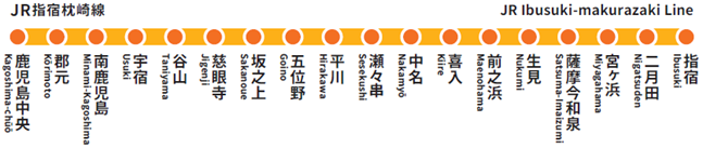 この度、2023年10月4日(水)より指宿枕崎線の鹿児島中央駅~指宿駅(18駅)を追加いたします。