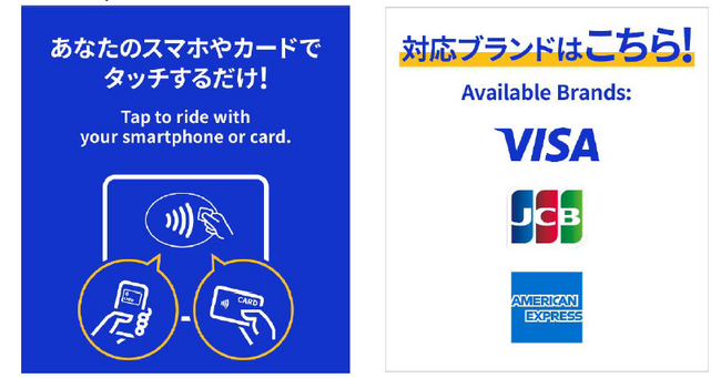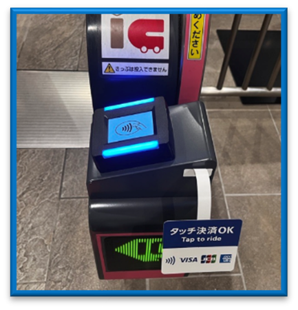 入場時及び出場時に、タッチ決済対応カード(クレジット、デビット、プリペイド)や同カードが設定されたスマートフォン等を、自動改札機や専用端末にかざしていただくことで、列車をご利用いただけます。