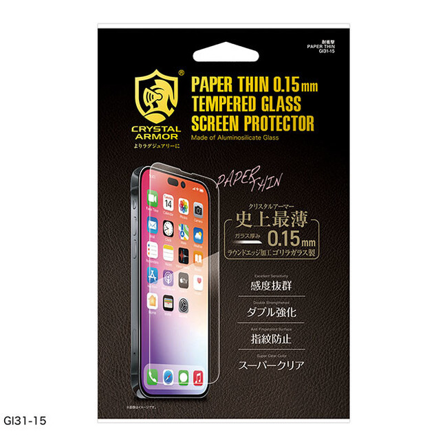 クリスタルアーマー史上最薄の0.15mm厚ゴリラガラス製ラウンドエッジ強化ガラス「PAPER THIN」。ディスプレイ保護にガラスフィルムを使いたいけど厚みが気になる方におすすめ。