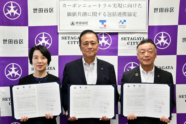 世田谷区(区長:保坂 展人)、東京ガス株式会社(社長:笹山 晋一)、東京ガスネットワーク株式会社(社長:沢田 聡)は、このたび、世田谷区のカーボンニュートラル実現に向けた価値共創に関する包括連携協定(以下「本協定」)を締結しました。