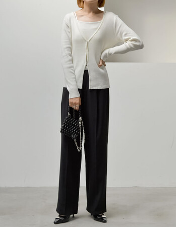 きれいめなスタイリングに仕上げるなら「ニットカーディガン×アメスリキャミソールセット」