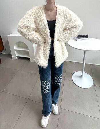 ボリューム感たっぷりのシルエットを描く「ボアカーディガン」