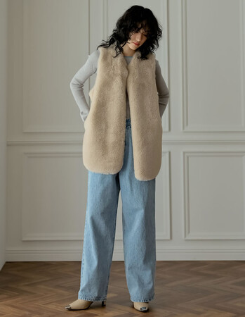 滑らかで上質な肌あたりが魅力のフェイクファーベスト。