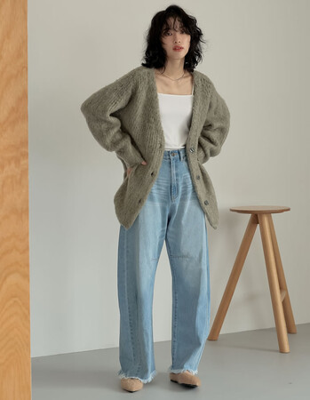MIXカラーシャギーニットカーディガン