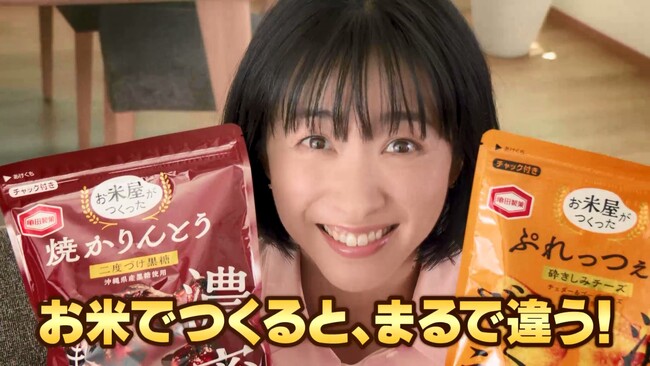 『お米屋がつくった 焼かりんとう黒糖』、『お米屋がつくった ぷれっつぇるチーズ』の発売にあわせて、9月18日(月)から無料配信動画サービス「TVer」でCMを配信いたします。商品の美味しさをしっかりと伝えたい思いから、CMをしっかりご覧いただきやすい「TVer」を活用。また、「TVer」には番組提供がないことを逆手にとり、「このおいしさは亀田製菓の提供でお送りします」というクレジットからCMがスタート。某長寿テレビ番組のコーナーVTRに出演していた黛英里佳さんを起用し、再現VTRを彷彿させるリアクションをふんだんに散りばめた、記憶に残るCMをどうぞご覧ください。