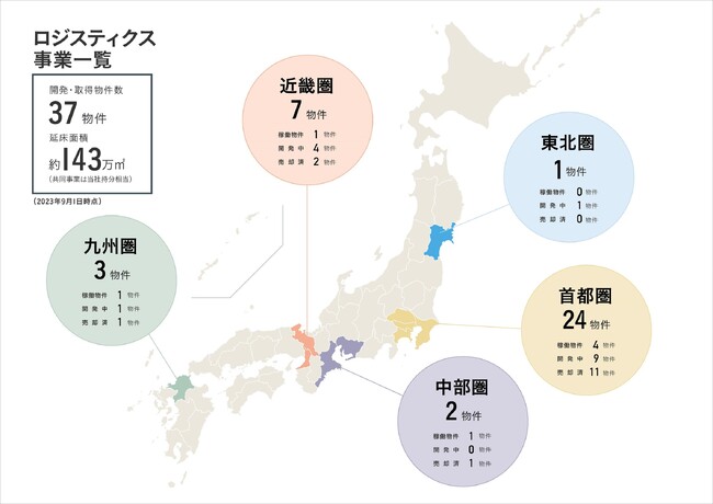日本国内の物流施設事業に関しては、東急不動産では2016年より物流施設開発事業に参入しており、「社会の発展を支える、東急不動産のロジスティクス」をコンセプトとするロジスティクス施設「LOGI‘Q」を日本各地で展開し、2023年9月時点において37施設 約143万平方メートル の開発・運営に携わり、日本国内での社会インフラづくりに寄与してまいりました。