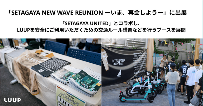 株式会社Luup(本社:東京都千代田区、代表取締役社長兼CEO:岡井大輝、以下「Luup」)は、dot button company株式会社(本社:東京都世田谷区、代表取締役:中屋祐輔)と、世田谷区(区長:保坂展人)による「SETAGAYA PORT(セタガヤポート)」プロジェクトにて、区内の新たな産業創出を担う次世代の事業者・クリエイターを応援することを目的として2023年9月10日(日)に三軒茶屋ふれあい広場及び周辺スペースで開催されたイベント 「SETAGAYA NEW WAVE REUNION ーいま、再会しようー」に、ローカル・イノベーション・フットボールクラブ「SETAGAYA UNITED」とのコラボレーションブースを展開しました。