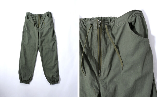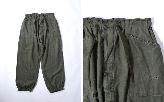 ヴィンテージのミリタリーオールインワンをパンツとジャケットに分けたユニークなアイテム。