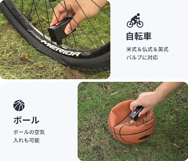 また、タイヤ以外にも、ボールや浮き輪などの空気入れも可能です。
