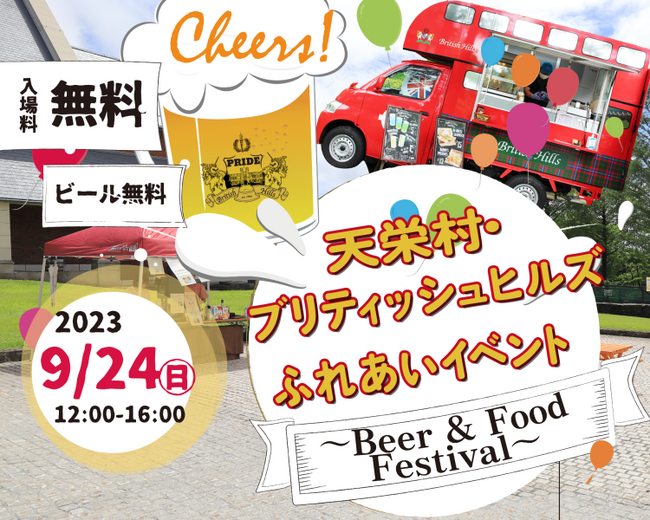 2023年9月8日(金)に福島県との包括連携協定を締結した神田外語グループ(東京都千代田区/理事長 佐野元泰)が運営する、1994年の設立から100万人以上の来訪者を誇るブリティッシュヒルズ(福島県天栄村)は、2023年9月24日(日)に天栄村の添田勝幸村長をお招きし「第6回天栄村・ブリティッシュヒルズふれあいイベント ~ビール&フードフェスティバル~」を開催します。天栄村とブリティッシュヒルズの魅力が一杯詰まったイベントで、福島県天栄村の特産品や工芸品など並ぶ「ブリティッシュヒルズマーケット」をはじめ、豪華景品が当たるお楽しみ抽選会、オリジナルビール「ブリティッシュヒルズプライド ブロンドエール」の無料提供、メインダイニングのリフェクトリーでのランチブッフェ、毎年大好評のジャズ生演奏、キッチンカーの出展など盛りだくさん。「パスポートのいらない英国」ブリティッシュヒルズで、ぜひ特別なひと時をお過ごしください。
