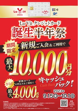 9/15 (金)から Lu Vit クレジットカード誕生半年祭開催!最大10,000円分キャッシュバック!