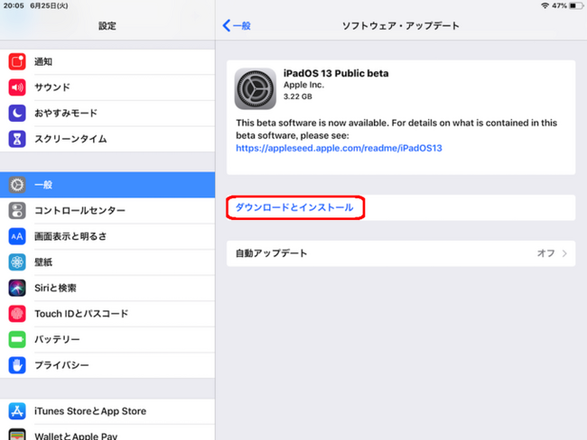 Step3、「ダウンロードとインストール」をタップしてダウンロードが始まります。