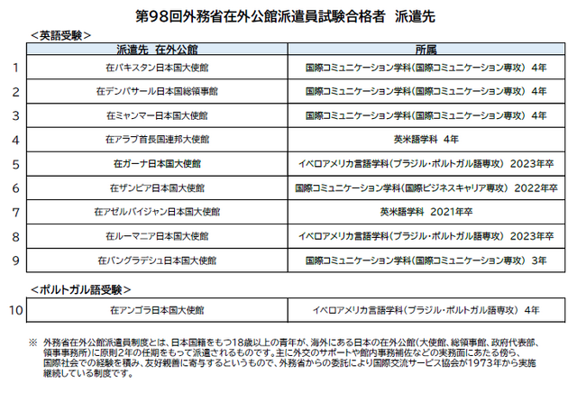 第98回外務省在外公館派遣員試験 神田外語大学から10人の学生・卒業生が合格