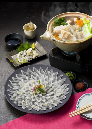 (天然とらふぐ刺身120g・天然とらふぐちり用アラ350g、天然とらふぐの皮の湯引き70g、