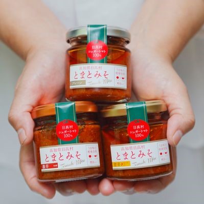 「味噌」×「ニンニク」×「トマト」のコラボレーションで生まれた新感覚の“ごはんのお供”。使っているトマトは、本来は廃棄されてしまう規格外のトマトでひと瓶になんと4つ入っています。ほっとする田舎の味をお楽しみください。