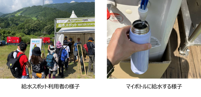 フジロックフェスティバル会場内にて給水スポット(タンク型浄水器)を3ヵ所に設置。期間中、マイボトルをご持参した多くの来場者に給水スポットをご利用いただき、約1,550リットルの水を提供しました。(1名あたり500ml使用したと換算した場合、延べ約3,100名が利用)※JR越後湯沢駅構内「and tap CAFE」は除く。