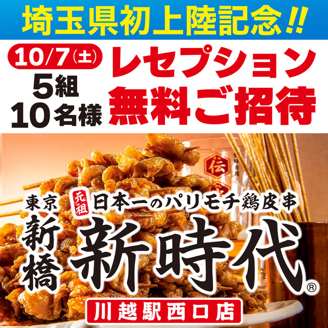 揚げ皮串発祥の店「新時代」等を全国150店舗展開する株式会社ファッズ(本社:愛知県名古屋市、代表取締役:佐野直史)は、2023年10月9日(月)に、埼玉県初上陸となる「新時代 川越駅西口店」をオープンさせて頂きます。