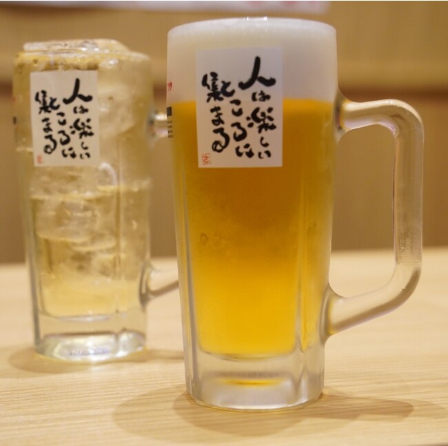 創業者が、プロサッカー選手時代に記していたサッカーノートから金言が、新時代のドリンクのジョッキに描かれています。書道家としての顔を持つ創業者が直筆で書きました。