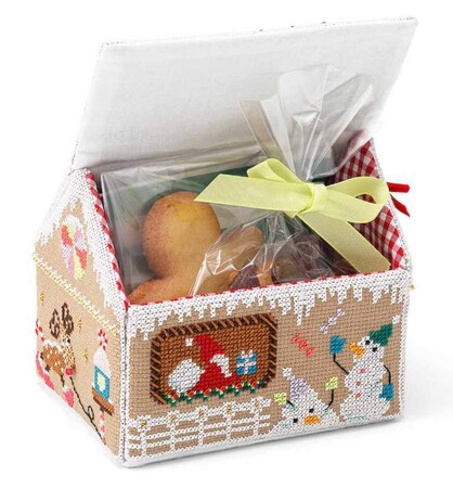 アメリカのクリスマスシーズンに欠かせないジンジャーブレッドハウスを溶けかけの雪だるまがキャンディーをキャッチしようとしていたり、トナカイの角がプレッツェルになっていたり、遊び心の詰まった図案にビーズやラメ糸を刺し混ぜて楽しく製作できます。壁と屋根を1面ずつ作って組み立てると、かわいいジンジャーブレッドハウスが完成します。
