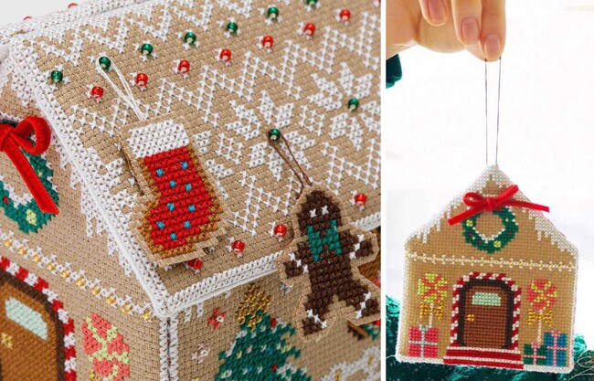 まるでお菓子の家、アメリカのクリスマスの定番スイーツ「ジンジャーブレッドハウス」をクロスステッチで作るキットがフェリシモ「Couturier[クチュリエ]」から新登場