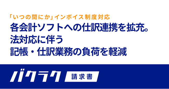 バクラク請求書、インボイス制度に対応した各会計ソフトへの仕訳連携を拡充。法対応に伴う記帳・仕訳業務の負荷を軽減