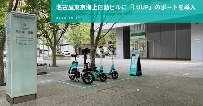 株式会社Luup(本社:東京都千代田区、代表取締役社長兼CEO:岡井大輝、以下「Luup」)は、東京海上日動火災保険株式会社(本社:東京都千代田区大手町二丁目6番4号、取締役社長:広瀬伸一)が所有する名古屋東京海上日動ビル(所在地:愛知県名古屋市中区丸の内2-20-19)に電動マイクロモビリティのシェアリングサービス「LUUP(ループ)」のポートを導入し、2023年9月6日(水)より利用可能となったことをお知らせします。なお、名古屋市における公開空地へのLUUPのポートの導入は今回が初となります。
