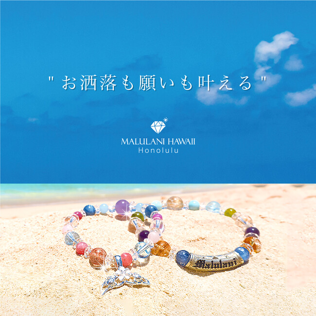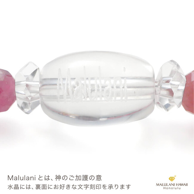 オリジナルチャームと水晶には、ハワイ語で「神に護られた」という意味の「Malulani」と刻印。