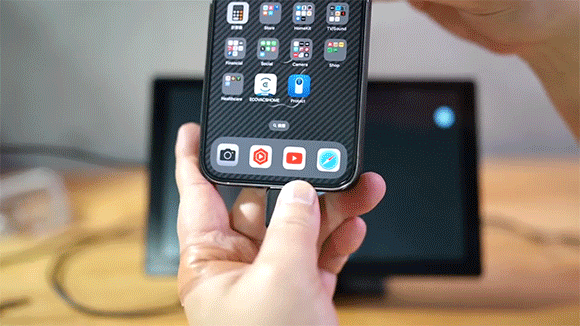 ミラーリング機能を搭載しており、スマートフォンの画面をそのままディスプレイ上に投影できます。また、スマートフォンを横にすると画像がディスプレイ画面全体に表示され、映画鑑賞やゲームにも活用できます。