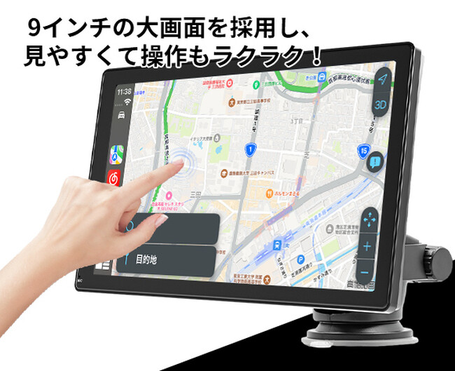 従来のカーナビは、1DINサイズの画面で表示されるため、文字や細かいルートが見えにくいという問題がありました。TENKENは9インチの大画面を採用することで表示が見やすく、また音声アシスタントにより簡単な操作が可能となるため、利便性が格段に向上します。