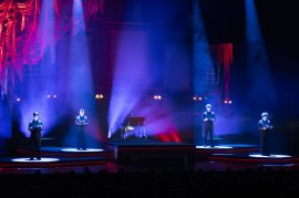 一人ひとりのリーディングに集中できる短編が披露された後は、キャスト全員が集結して1つの話を演じる。本番までに台本を完成させられなかった売れない演劇ユニットが劇場に伝わるいわくつきの台本を探しだし……という内容で、リアルとフィクションが溶け合っていくような感覚にゾクッとする。4人のキャストによるイキイキとした掛け合いが魅力的だ。また、ソロのリーディングでは動きが少なかったぶん 4人がステージ上で右往左往する様子に緊張感が高まり、さらに引き込まれた。 演じるキャストによってキャラクターの印象や関係性も少しずつ変わると予想されるため、他の回も見てみたいと思わされた。
