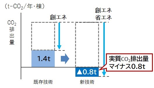 1.大容量のPV・蓄電池でのエネルギー自給自足型※2生活により、CO2排出量削減効果が拡大