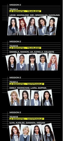 映像ではLE SSERAFIMがミッション2を発表し、18人の練習生が4つチームに分かれてLE SSERAFIMのデビュー曲「FEARLESS」と2nd Mini Albumのタイトル曲「ANTIFRAGILE」が課題曲となることに。2チームずつが同じ曲で競い合うことになり、個人の実力や魅力はもちろん、チーム全体のバランスやパフォーマンスの完成度を直接比較することができるミッションとなります。