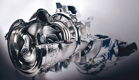 車両用ターボチャージャ(撮影用に一部を加工)
