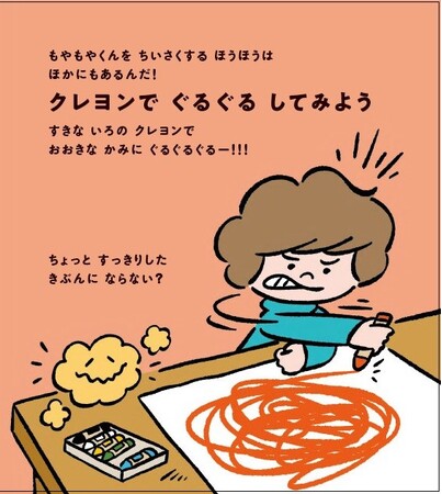 ネガティブな感情を忘れるほど夢中になれる遊びや作業に没頭する“フロー体験”もおすすめです。クレヨンで紙にぐるぐると思う存分書きなぐるだけでもOK。