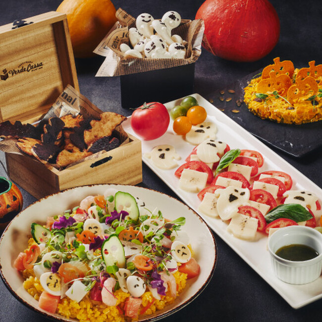詳細:(1)お化けモッツァレラとトマトの「カプレーゼ」や、ハロウィン仕様の「イタリアンちらし寿司」、「お化けメレンゲとコウモリパイ」など、限定メニューをご提供します。