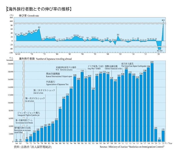 ・2022年における海外旅行者数は277万人、需要回復に遅れ