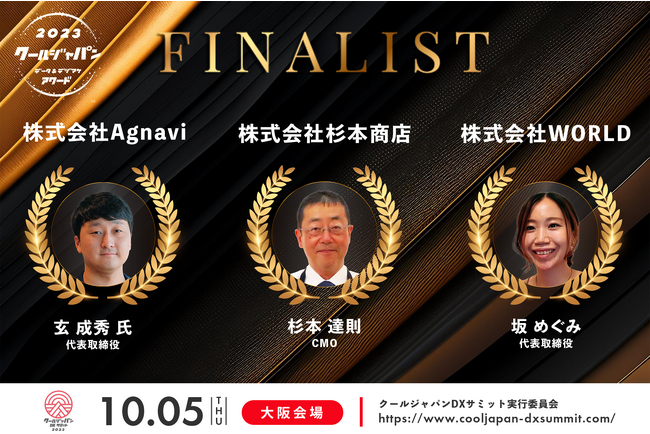 ファイナリストは2023年10月5日(木)にクールジャパンパーク大阪(大阪府大阪市)にて行われるアワードファイナルに参加し、10名の豪華審査員による厳正な審査によってグランプリをはじめとする各賞の受賞者を決定します。