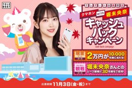 テレボートと堀未央奈が初のコラボレーション!「現金ゲットコース」と「わいわい観戦コース」の2コースから選べる『クマホンwith堀未央奈 キャッシュバックキャンペーン』を10月1日(日)0時から開始!